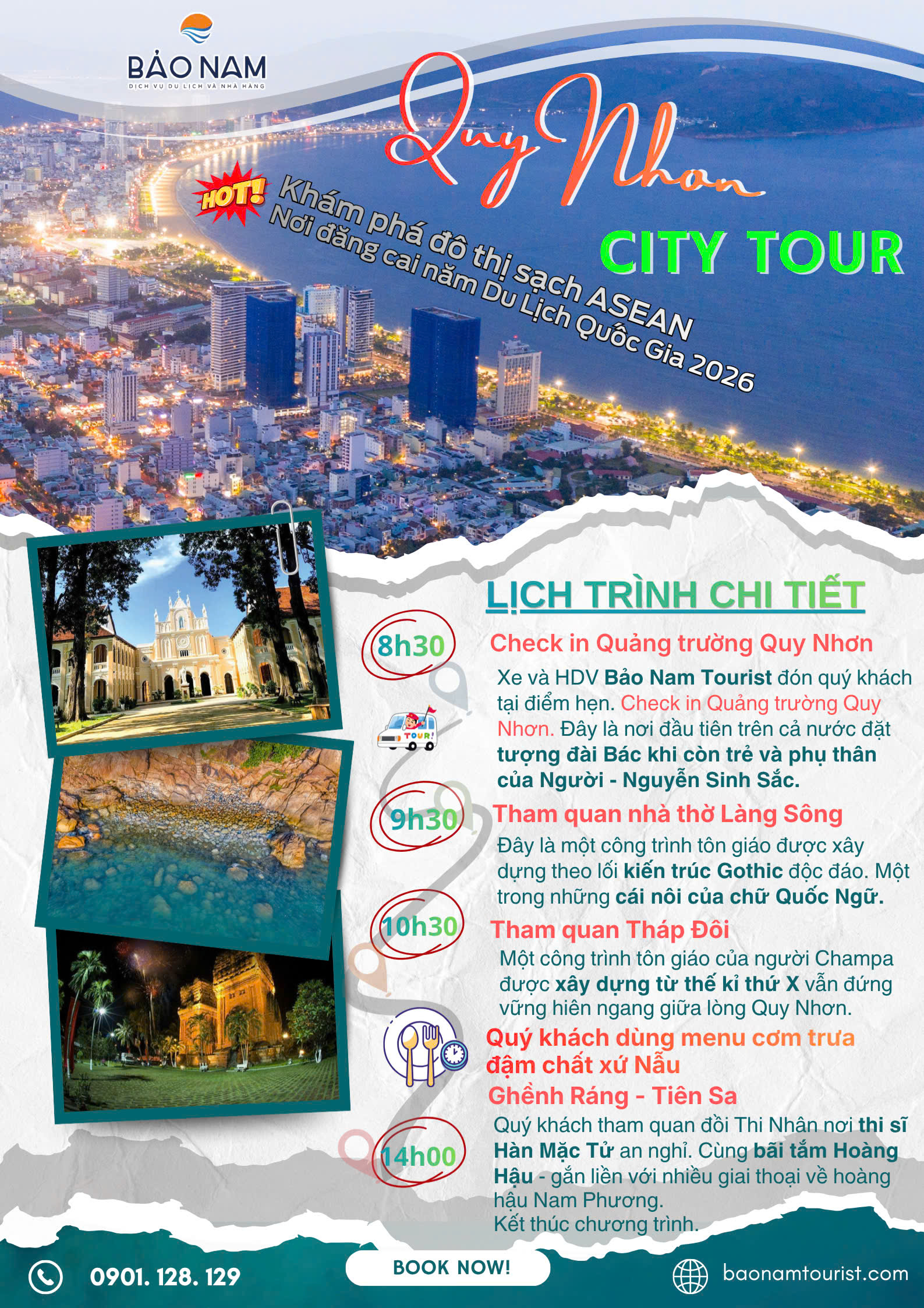 - Hướng dẫn viên nhiệt tình, có kinh nghiệm về Quy Nhơn – Phú Yên. ( Dành cho đoàn 10 khách trở lên)